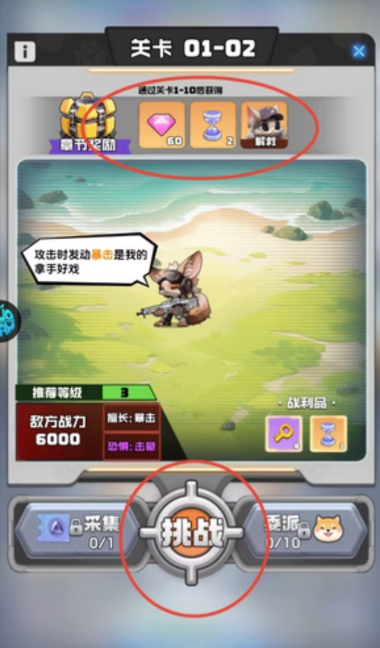2. 在关卡选择界面,会呈现通关奖励以及敌方详尽数据,其中涵盖战力数值与攻击特点。确认信息无误后,点击挑战按钮,就能进入战斗。