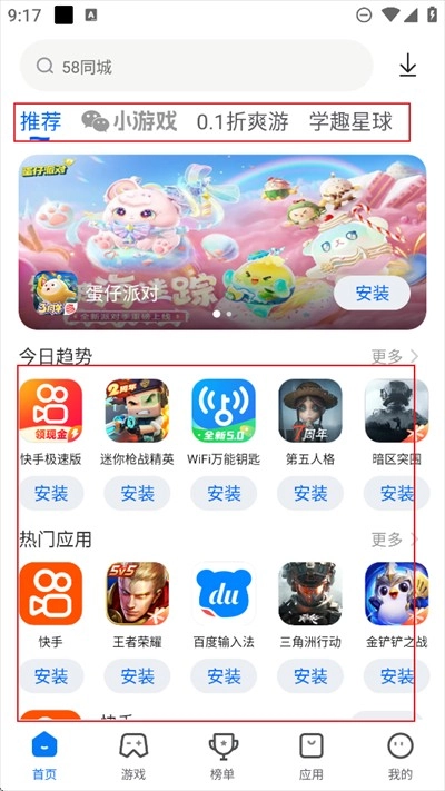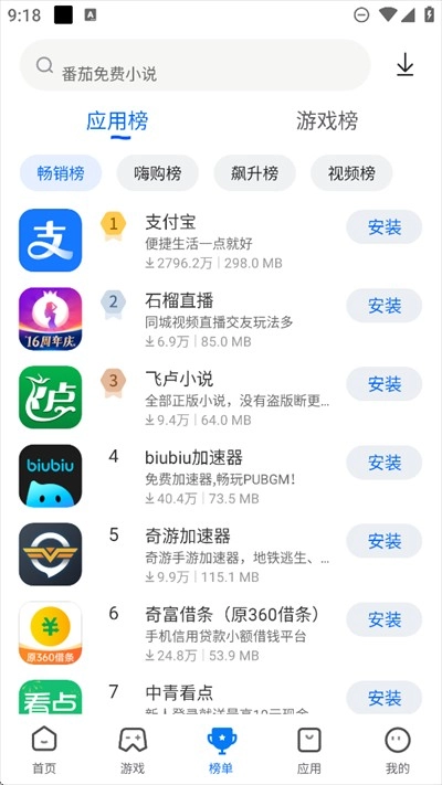 轻点榜单,即可查看应用榜与游戏榜的热门榜单。