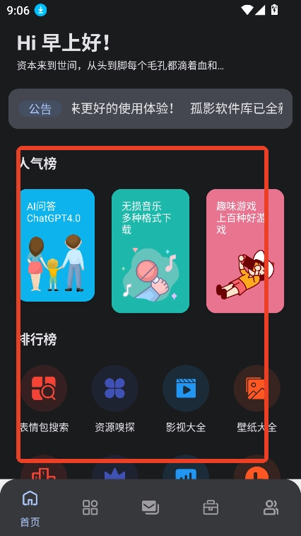 孤影软件库app官方版本,是一款资源极为丰富的手机应用程序。软件里的资源分类精细入微,用户能够依据自身需求,迅速定位到想要的资源。该平台会定时更新热门资源,保障用户随时都能获取到软件的最新版本。而且在使用过程中,不会受到广告与弹窗的打扰,为用户营造了更为纯净的使用环境!