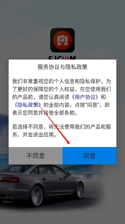 2. 阅读且同意SJCAM行车记录仪app的用户协议