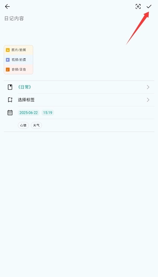 2. 轻点页面中部的“写日记”圆形图标,便能进入编辑页面。