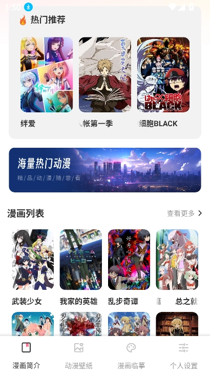 这里有热门动漫简介,让你提前知晓剧情,从中挑选心仪的动漫。同时提供热门动漫壁纸,一键点击即可下载,瞬间为你的屏保带来全新风貌。此外,还有漫画临摹项目,若你钟情于动漫人物,不妨亲自上手临摹创作!你所期待的,都在这里等你探索!