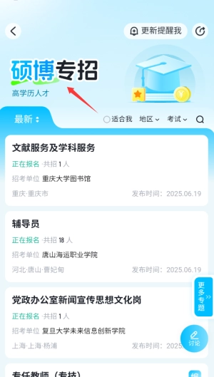 2. 在浏览招聘专题页面时,能够借助地区筛选或者岗位类别进行快速定位,从而找到目标职位列表,点击即可查看。