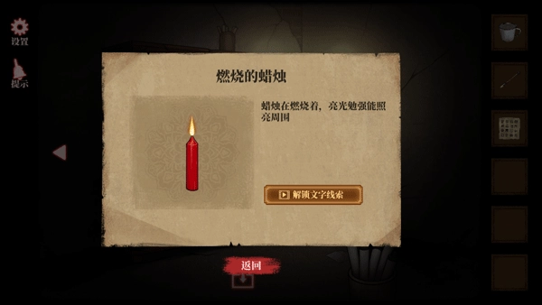 6、同时你还可以根据签盒将右边架子上的匣子解密获得蜡烛;