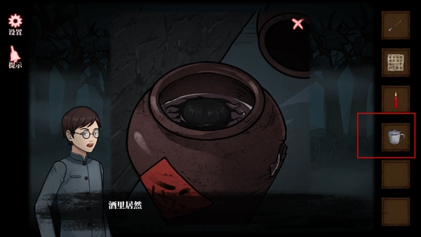 7、你还需要走出房子,靠近房门傍边的酒缸,用杯子获取缸里面的酒并将它倒入要砚台上;