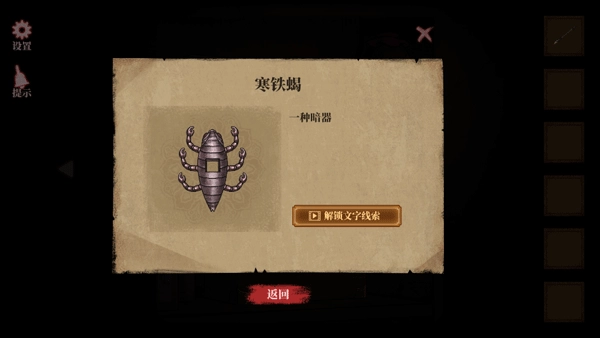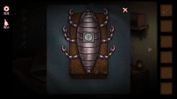 12、然后根据床头桌子上的书来点击蝎子的脚,不同数字对应点几下屏幕,将盒子打开获取钥匙;