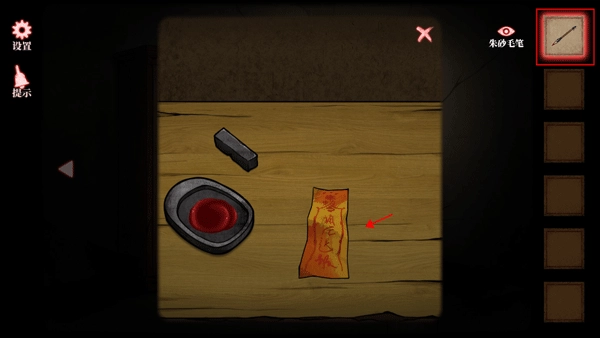2、在下山的路上遇到了一个破房子,房门被锁住,点击簪字,打开锁获取符纸;