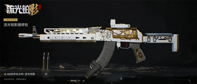 【AKM突击步枪 - 流光铂影】的设计独具匠心,枪管、握把以及枪托的镂空部位,都被精心雕刻成花枝剪影的模样,再配上几何切割的边框,显得既规整又精美。
