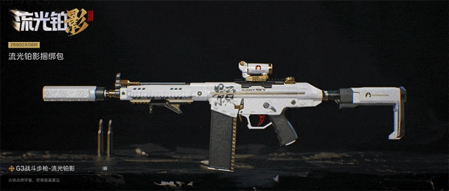 【G3战斗步枪 - 流光铂影】以铂金与银色金属铸就,绽放出明亮且冷冽的光泽。
