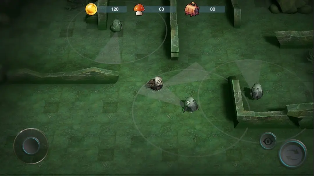 《小鸡别跑》是一款潜行类型的休闲游戏,玩家在游戏中需要操控角色进入副本搜集蘑菇,同时避开里面的小鸡守卫,积累金币,并雇佣各种不同的小鸡。