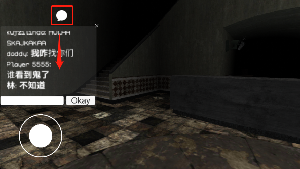 3、通过按压虚拟按键,来控制人物的奔跑蹲下。