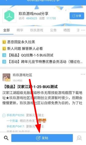 2、之后选择页面下方【发帖】,点击之后进入编辑页面;