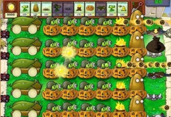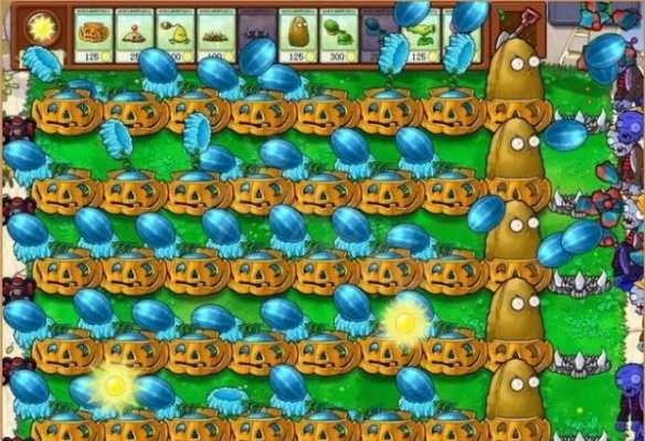 相比之下,这种种植方法更加残忍,完全不给僵尸喘气的机会,先在最后一排种上地刺王,然后其余的就是高坚果和冰冻西瓜再套上南瓜头,当僵尸出现的时候,满天的西瓜砸向僵尸的头上,出现就能把僵尸给秒了,僵尸想要点植物都不行……