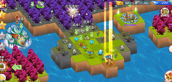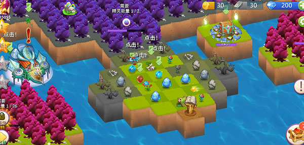 3、精灵持续收集生命之花来生成能量球,点击这些能量球能够修复土地,也可以将它们合并成更高等级的能量球,以覆盖更大的治愈范围。