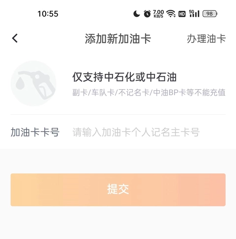 然后输入加油卡卡号,最后点击提交就添加成功了。