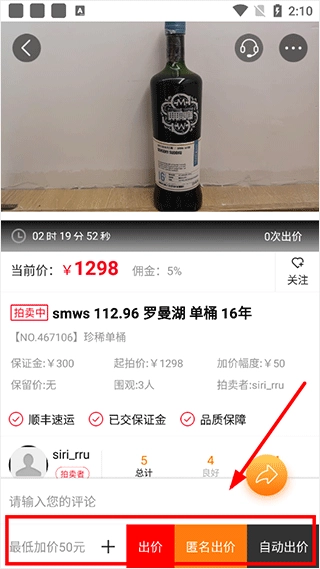 选择要购买的酒,进入拍卖页面;