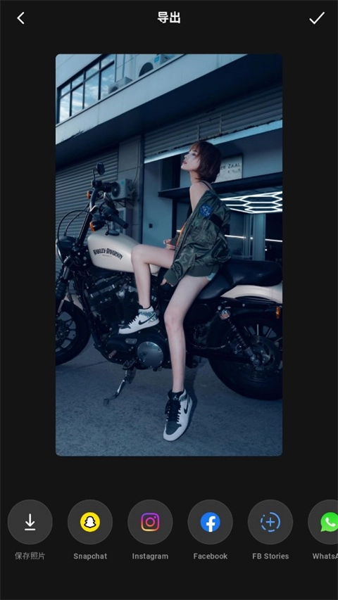 完成内容调整后,点击界面右上角的“下一步”按钮,随后可根据需求选择将成果保存至本地相册,或是直接分享至各类社交网络平台。