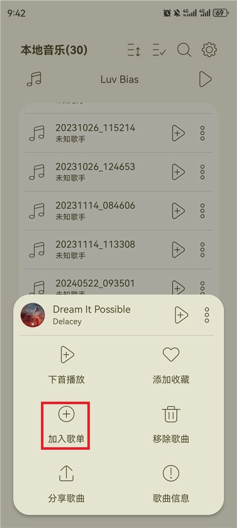 回到主界面后,点击歌单列表里的第一个歌单,就能看到里面的歌曲了。