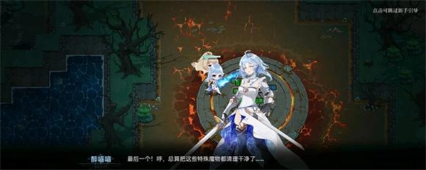 这个游戏采用关卡递进解锁机制,只有通关当前关卡,才能开启下一关。每个角色均配备一个核心技能与三个小技能,以艾欧为例,核心技能的能量消耗为40点,小技能则需5点能量。进入地图后,角色会自动与小怪展开战斗,无需手动按键操作,仅在释放技能时需要玩家手动触发。小怪被消灭后,会掉落经验书、装备、宝石等道具;击败BOSS则会有更丰厚的掉落奖励。在地图中若遇到不主动攻击的精灵,记得进行拾取;此外,像大敲钟这类互动元素,也建议点击对话,通常能获得额外奖励。