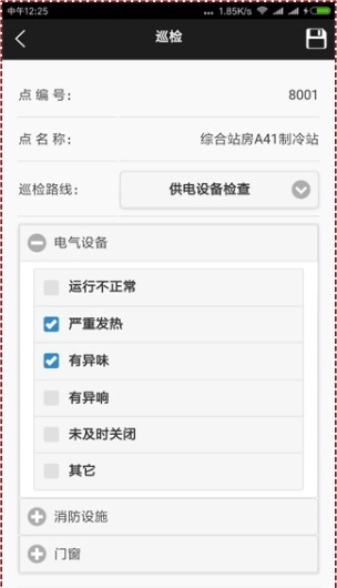 不同巡检点对应着各异的巡检项目,需要您认真开展巡视检查工作,如实填写相关信息并拍摄现场照片,完成这些步骤后,点击【确定】按钮,即可把本次巡检记录上报至巡检卫士云平台。