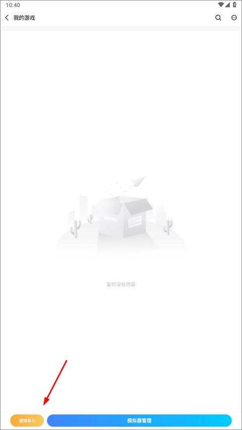 请点击界面左上角的“我的游戏”选项。进入该界面后,在左下角位置可以找到“游戏导入”按钮。