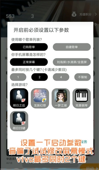 用户可以借助覆盖在游戏界面上的浮窗,轻松使用瀑布流、自动演奏等功能。