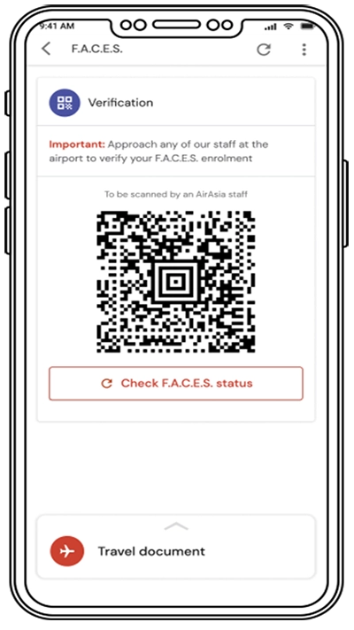 您能随时随地借助FACES便捷地完成登机手续办理!这不仅是开启亚航旅行的快速途径,您还能通过这一非接触式功能,避开机场办理登机时的拥挤与长时间排队。