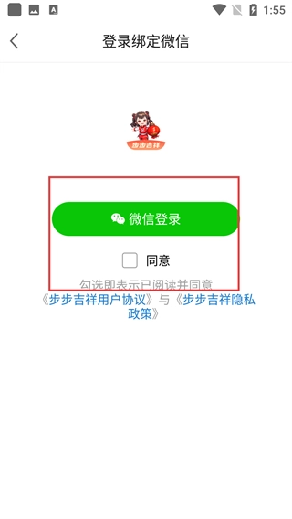 进入【登录绑定微信】页面,勾选【同意】相关协议后,点击【微信登录】按钮,即可发起微信授权登录流程。
