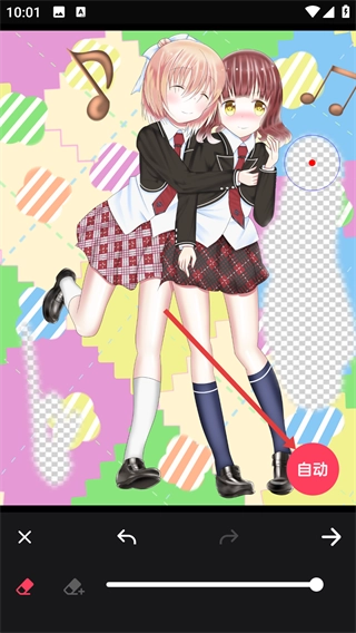 在抠图编辑界面,点击【自动】按钮,软件便会自动进行抠图处理。