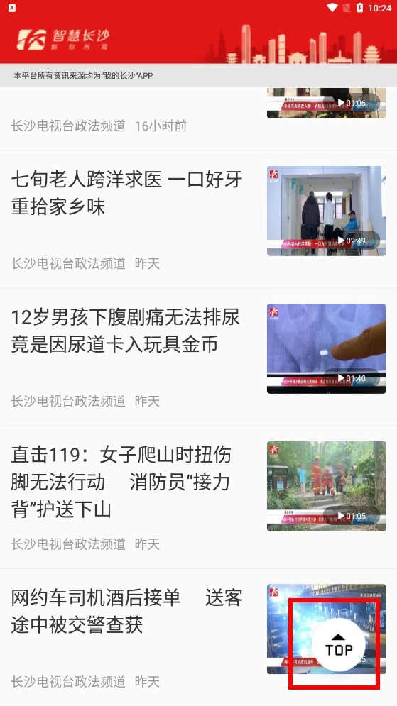浏览资讯列表后,点击【TOP】按钮,即可快速回到页面顶部,便于查看新资讯。