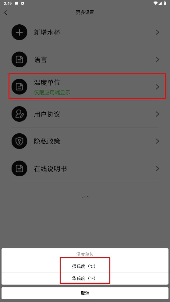进入更多设置界面后,找到并点击【温度单位】这一选项,就能在摄氏度和华氏度之间选择其一作为温度的显示单位。