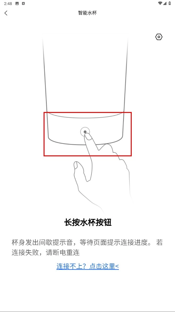长按水杯的按钮,让水杯切换到可连接状态,然后等待连接进度的提示。