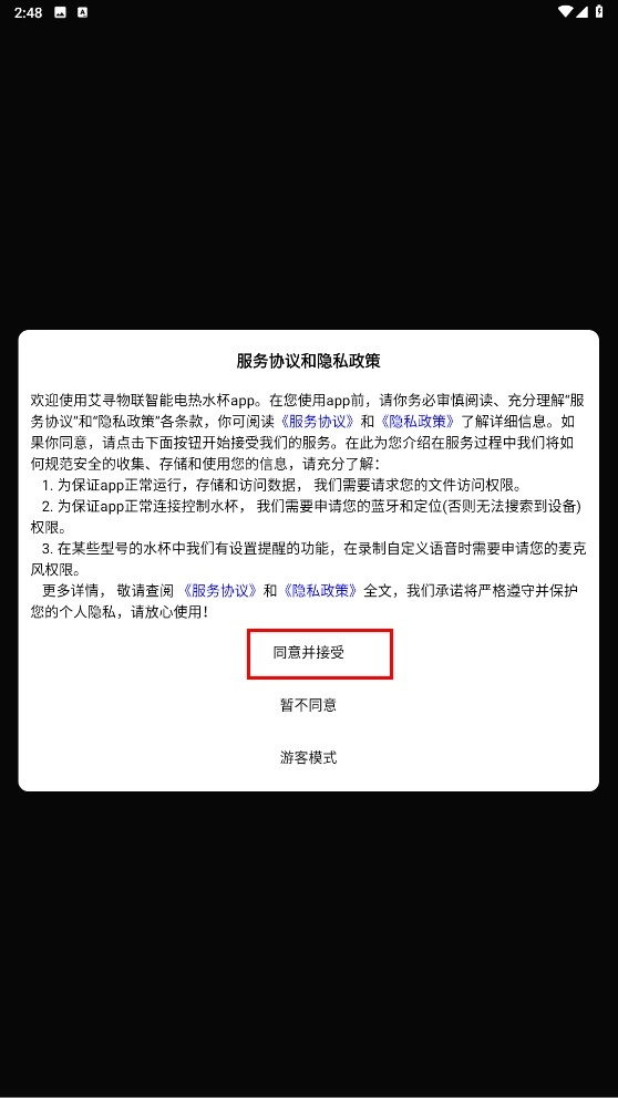 点击【同意并接受】按钮,即表示您同意相关服务协议与隐私政策,随后即可进入。