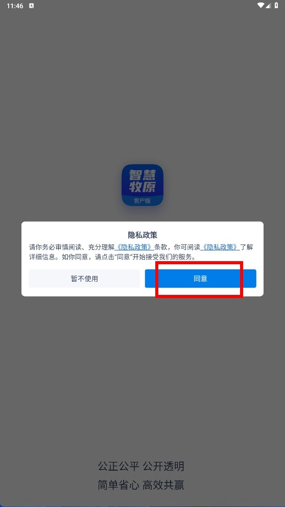 在隐私政策界面,点击【同意】,进入登录环节。