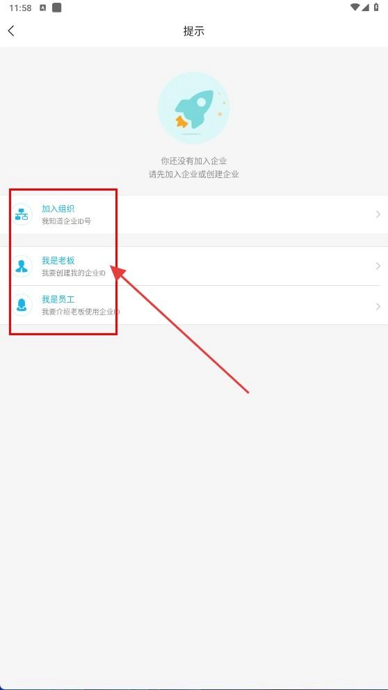 在提示页面,你可以选择【我是老板-功能选项】,随后进入注册企业号的页面。
