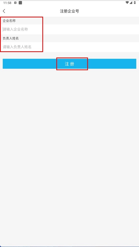在企业号注册页面填写企业名称与负责人姓名,点击【注册】功能按钮即可完成企业注册流程。