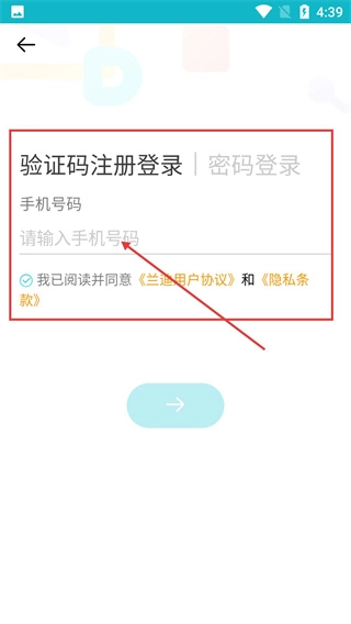 在验证码注册登录页面,输入手机号码后,就能进入填写验证码的环节。