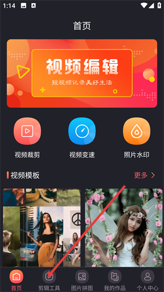 在视频编辑的首页,点击页面底部的【剪辑工具】选项,即可进入剪辑工具页面。