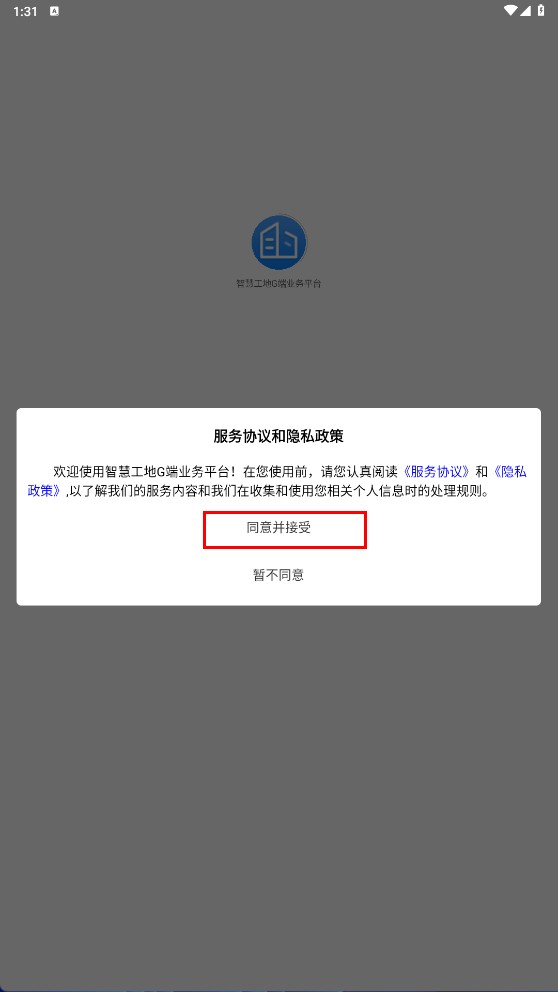 在服务协议与隐私政策的界面中,点击【同意并接受】按钮,即可进入登录流程。