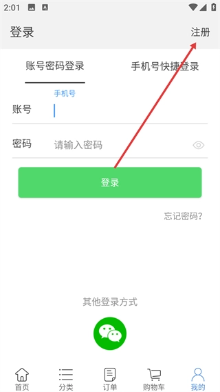 点击【注册】选项,进入注册页面。
