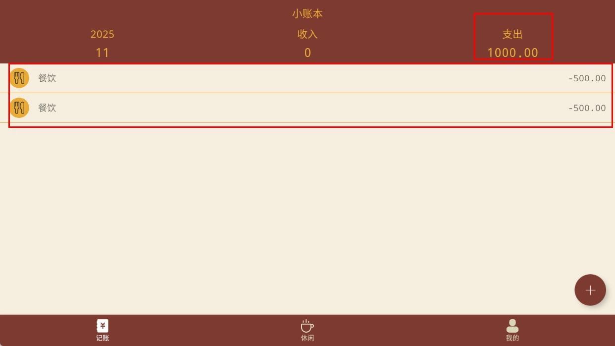 完成记录后,您能够在账本里查看【餐饮-支出记录】以及总支出金额。