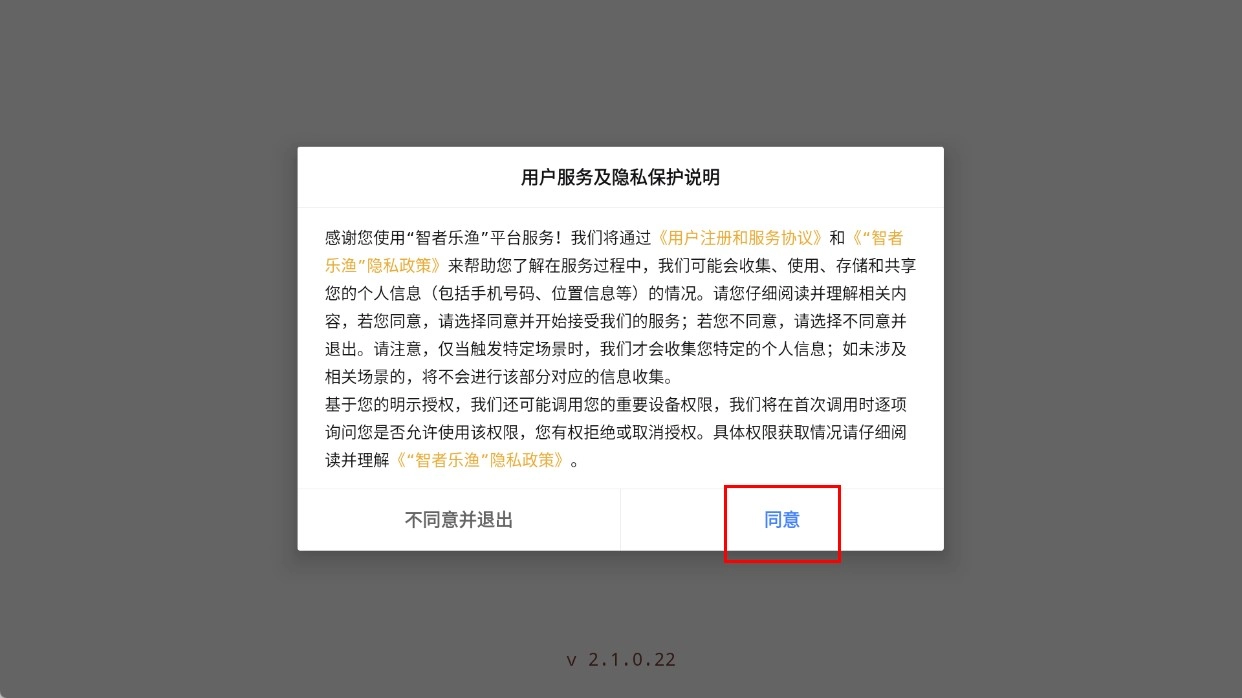 点击【同意】按钮,接受用户服务协议与隐私保护说明,即可进入软件。