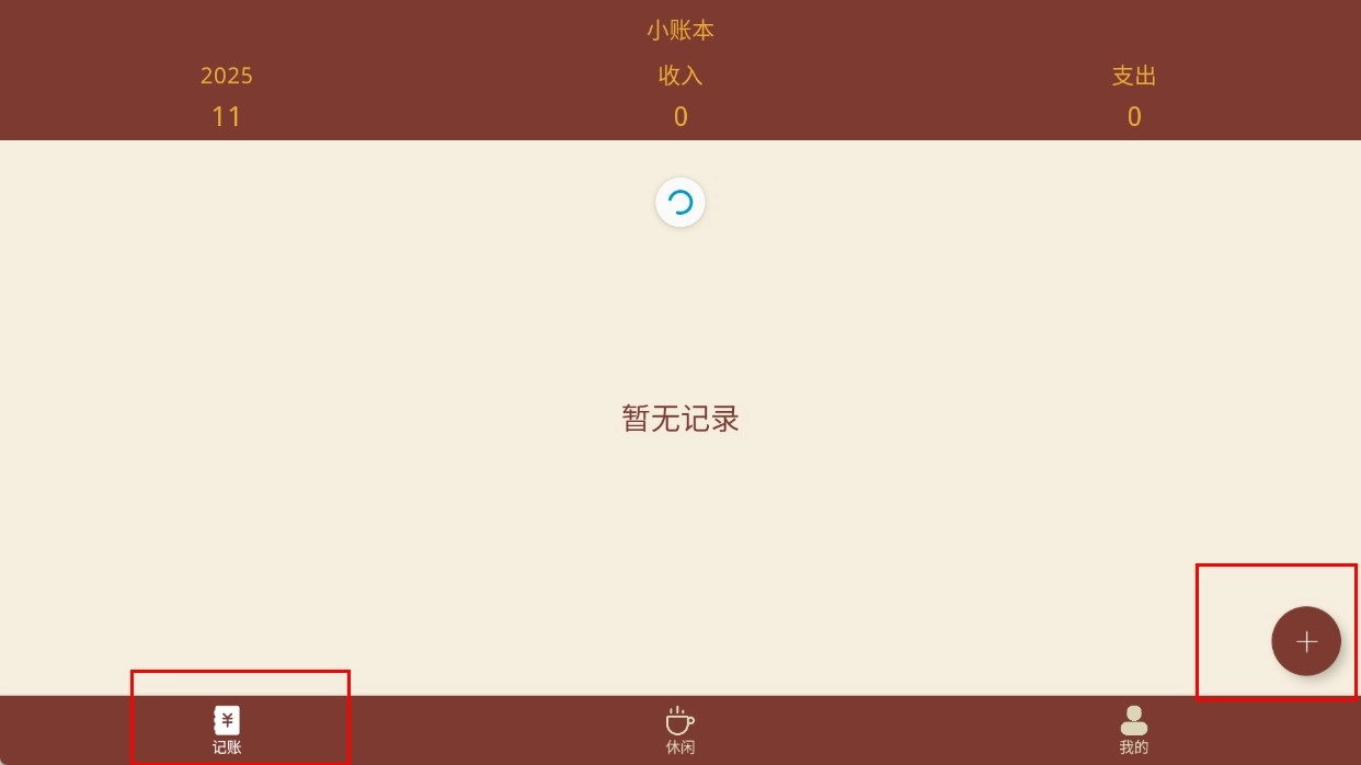 在【记账界面】,点击右下角的【添加按钮】,即可开始记录账目。