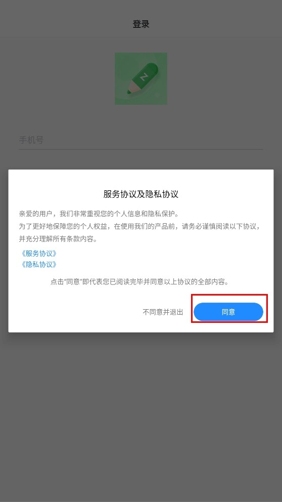 点击【同意-功能按钮】,以同意相关的服务协议和隐私协议。