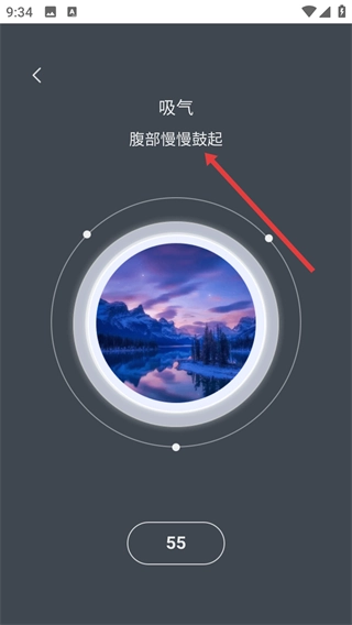 进入深呼吸引导环节后,依据【吸气时腹部缓缓隆起】的提示,跟着引导完成吸气动作,以此达成减压步骤。