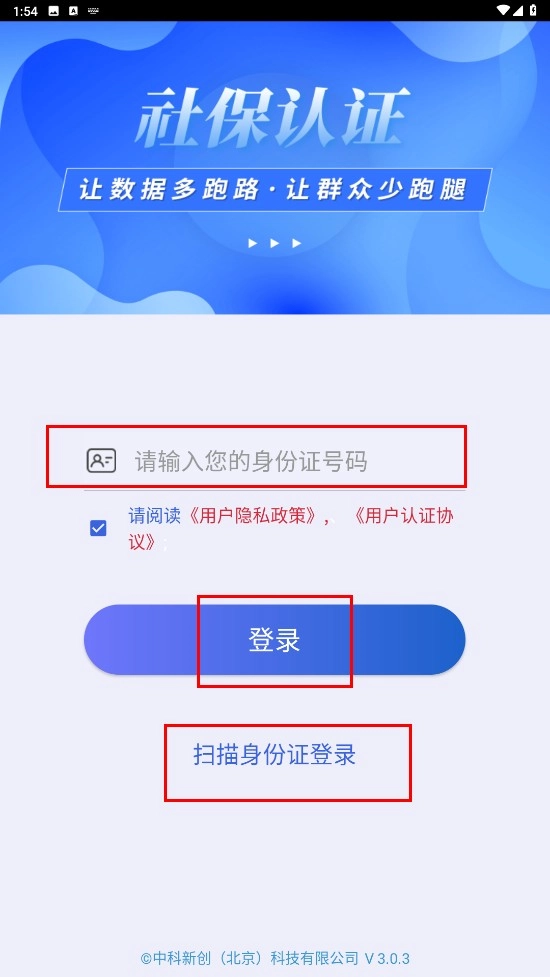 输入身份证号码后点击【登录】按钮,或者选择【扫描身份证登录】选项。