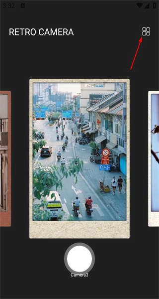 打开软件后,进入主界面,界面上会展示复古风格的照片,接着点击右上角的功能入口。