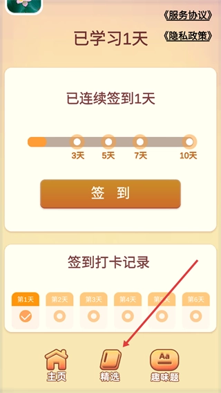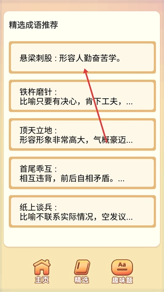 点击【精选】选项,进入精选成语推荐页面。