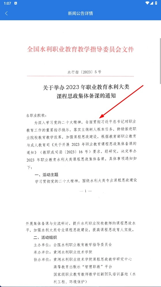 点击公告详情,查看《水利大类课程思政备课》通知,了解活动主题、主办单位等相关信息。