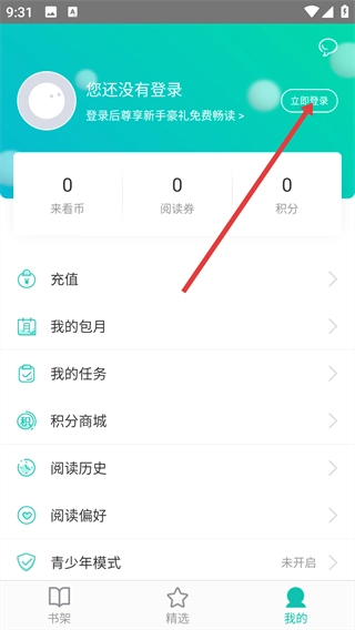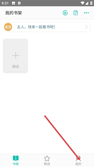 进入【我的书架】页面后,点击底部导航栏中的【我的】选项,即可进入个人中心页面。